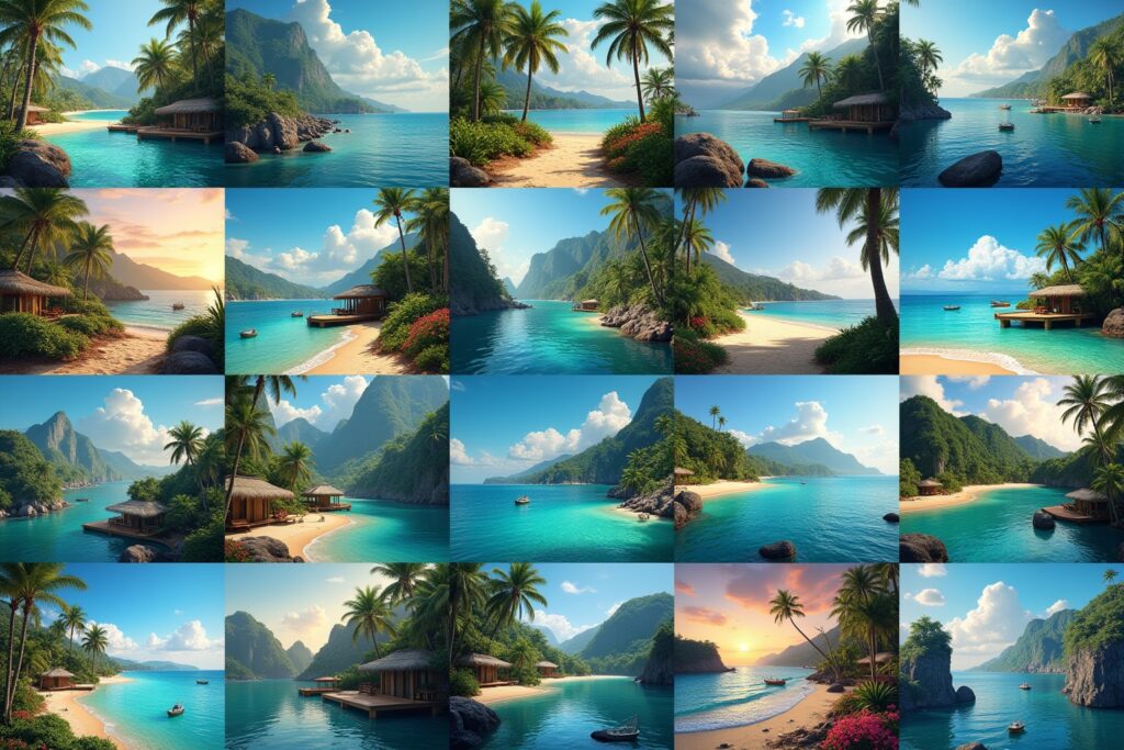 Die Faszination tropischer Landschaften liegt in ihrer Fähigkeit, Assoziationen von Wärme, Exotik und unberührter Natur hervorzurufen. Die folgende Übersicht strukturiert 16 archetypische Darstellungen, die in ihrer Vielfalt das Spektrum des Urlaubsgefühls abbilden und als Referenzpunkte für die Auswahl oder die kreative Auseinandersetzung dienen können. Jedes Szenario ist so konzipiert, dass es eine spezifische Stimmung und ein einzigartiges visuelles Erlebnis bietet.